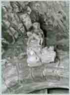 | Groupe sculpté : la Vierge de Pitié et le socle qui la supporte orné d'un ange tenant un écusson et accompagné latéralement de deux donateurs décapités. Pierre calcaire, traces de polychromie. Fin XVème-début XVIème siècle.