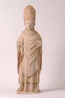 La statue du saint évêque de Bayeux, qui guide le visiteur dans l’exposition, fut découverte lors des travaux de l’ermitage Saint-Gerbold à Gratot en 2002. Le bâtiment est une ancienne chapelle qui appartenait aux seigneurs de Gratot. Lieu insolite, il est propriété départementale depuis 10 ans. La sculpture qui était enterrée sous le dallage, fut retrouvée en plusieurs morceaux. |